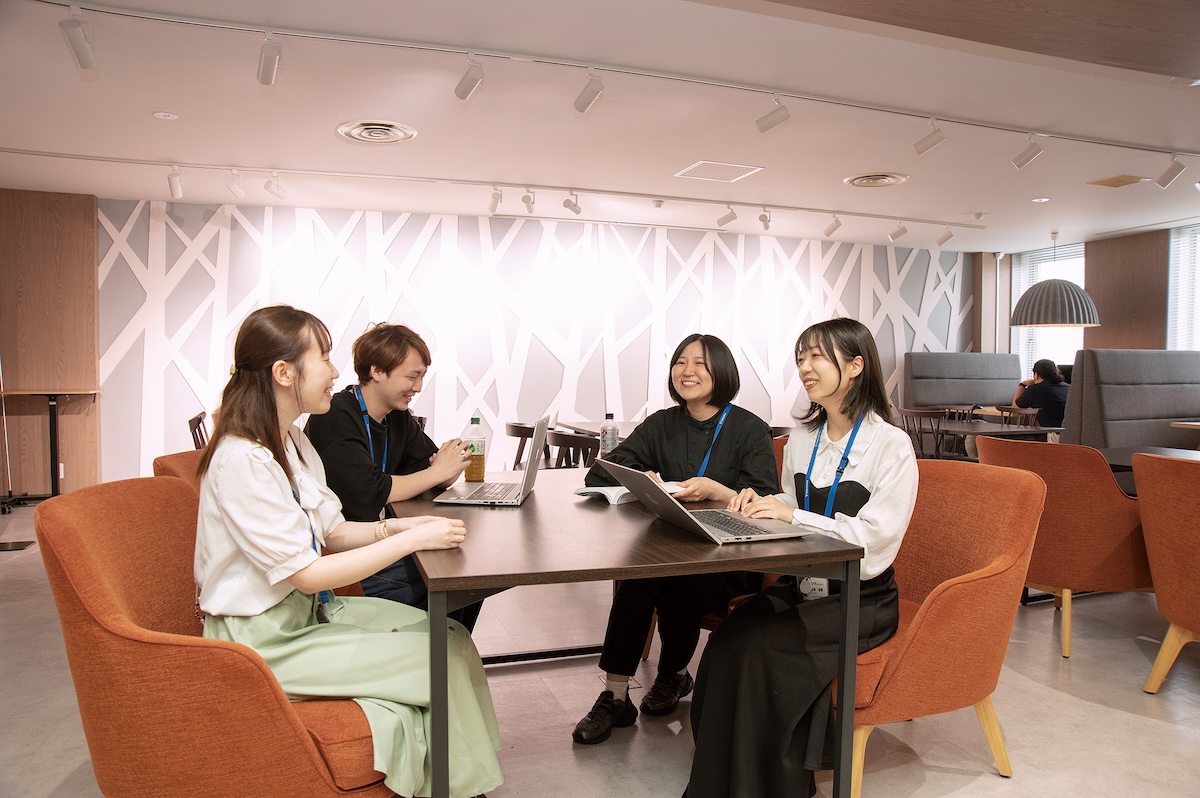 社員同士のつながりを大切にし、尊重し合いながらフランクにコミュニケーションできる風土が根付いています。休憩ラウンジには社員専用の図書コーナーやお菓子の社内販売など、福利厚生も充実しており、働きやすいオフィス環境です。